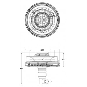 ALR0030 has features such as: 1 warning flash. The lamp has 48 LEDs. ALR0030 characterized by a power of 24 W. ALR0030 is a certified product. According to standards such as ECE R65, ECE R10. Moreover, it is made of materials: Lens: PC, Housing: ABS. Fastening is flex. The voltage is 12 V/24 V. The product is packaged in the following configuration car. dim.: 190x190x180 mm, lamp weight: 590 g, 20 pcs/bulk box.