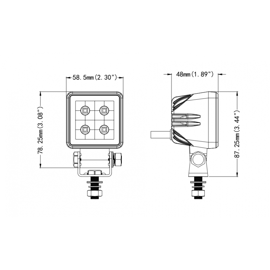 L0175 has features such as: work light, flood. The lamp has 4 LEDs. The number of LM is 1800 LM. L0175 characterized by a power of 18 W. L0175 is a certified product. According to standards such as ECE R10, ECE R148, ECE R149. Moreover, it is made of materials: Lens: PC, Housing: AL. Fastening is screw. The voltage is 12 V/24 V. The product is packaged in the following configuration .
