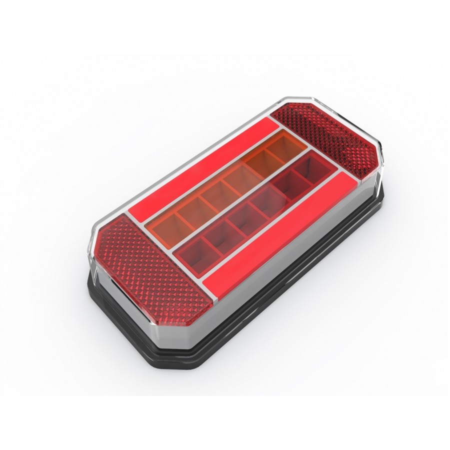 L1875 has features such as: tail, stop, indicator, reflector. The lamp has 24 LEDs. L1875 characterized by a power of 1,5 W, 3 W, 3 W. L1875 is a certified product. According to standards such as ECE R3, ECE R6, ECE R7, ECE R10. Moreover, it is made of materials: Lens: PC, Housing: ABS. Fastening is screw. The voltage is 12/24 V. The product is packaged in the following configuration cart. dim: 170x90x60 mm, lamp weight: 210 g, 40 pcs/bulk box.