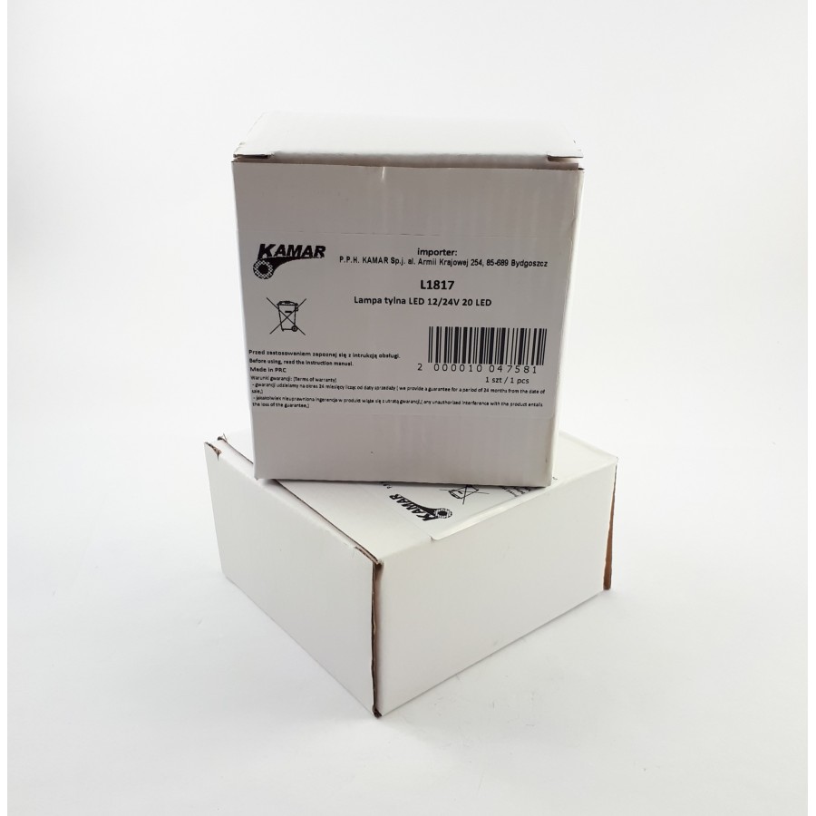 L1817 has features such as: tail, stop, indicator, NPL, reflector. The lamp has 20 LEDs. L1817 characterized by a power of 0,3 W, 3 W, 2 W, 1 W. L1817 is a certified product. According to standards such as ECE R3, ECE R4, ECE R6, ECE R7, ECE R10. Moreover, it is made of materials: Lens: PMMA+PC, Housing: ABS+PC. Fastening is screw. The voltage is 12/24 V. The product is packaged in the following configuration cart. dim: 110x100x60 mm, lamp weight: 170 g, 60 pcs/bulk box.