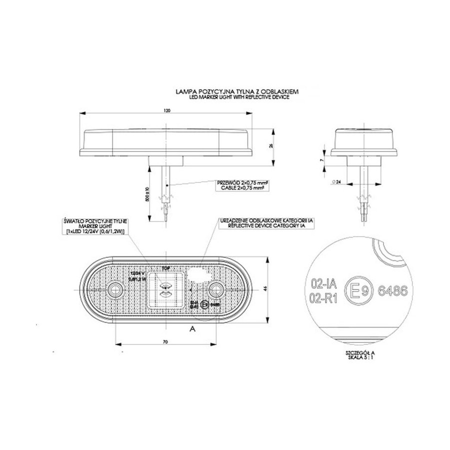 Seitenmarkierungsleuchte LED mit Reflex 12/24V rot LD 634 L1634
