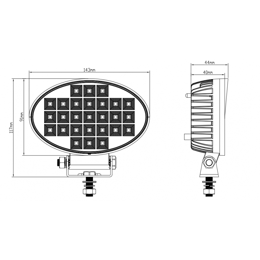 L0170 has features such as: work light, flood, switch on housing. The lamp has 27 2500 LM LEDs. L0170 characterized by a power of 40 W. L0170 is a certified product. According to standards such as ECE R10. Moreover, it is made of materials: Lens: PC, Housing: AL. Fastening is screw. The voltage is 12 V/24 V. The product is packaged in the following configuration cart. dim.: 150x60x146 mm, lamp weight: 300 g, 20 pcs/bulk carton.