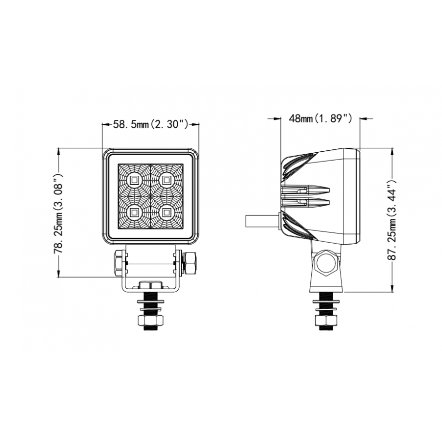 L0174 has features such as: work light, flood. The lamp has 4 LEDs. The number of LM is 1800 LM. L0174 characterized by a power of 18 W. L0174 is a certified product. According to standards such as ECE R10. Moreover, it is made of materials: Lens: PC, Housing: AL. Fastening is screw. The voltage is 12 V/24 V. The product is packaged in the following configuration .