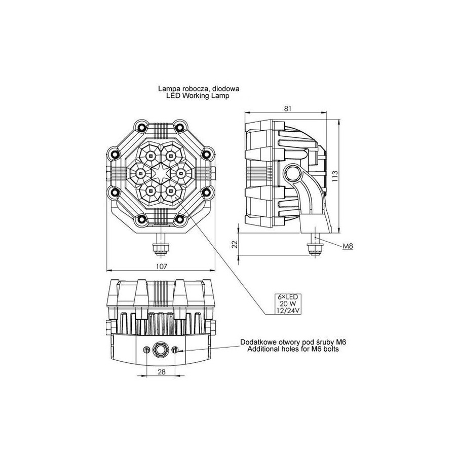 LED work lamp used to illuminate the working area in vehicles off the public roads. For proper installation and use of lights it is advisable to read the instructions to ensure personal safety and durability of the products. The device must be installed out of reach of children. The appliance must be fitted out of reach of children. If you would like to change the existing incandescent/halogen lighting on LED lighting - installation does not require to make any changes, except replacing the lamps.While installing new / additional LED lighting you must verify the current capacity of the switch to which you are going to connect the lamp. If you exceed the current carrying capacity of the switch to which you want to connect LED lighting, use an additional relay - the installation of lamps should make a professional engineer. Use in airy places. The instalation should be made by professional workshop of specialized service. User's manual available for download at www.truck-kamar.pl. Lamps must be installed only in accordance with UNECE regulations