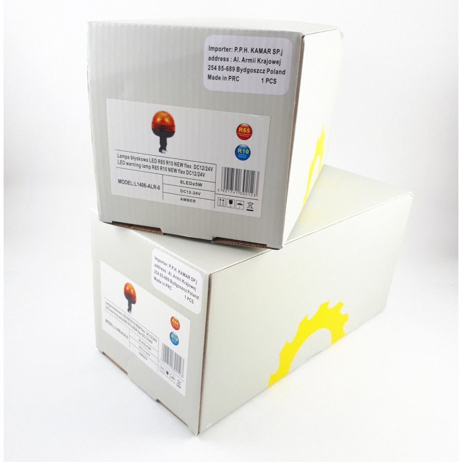 L1406-ALR-O has features such as: 1 warning flash. The lamp has 8 LEDs. L1406-ALR-O characterized by a power of 13 W. L1406-ALR-O is a certified product. According to standards such as ECE R65, ECE R10. Moreover, it is made of materials: Lens: PC, Housing: ABS. Fastening is flex. The voltage is 12 V/24 V. The product is packaged in the following configuration cart. dim.: 130x130x260 mm, lamp weight: 530 g, 20 pcs/bulk box.