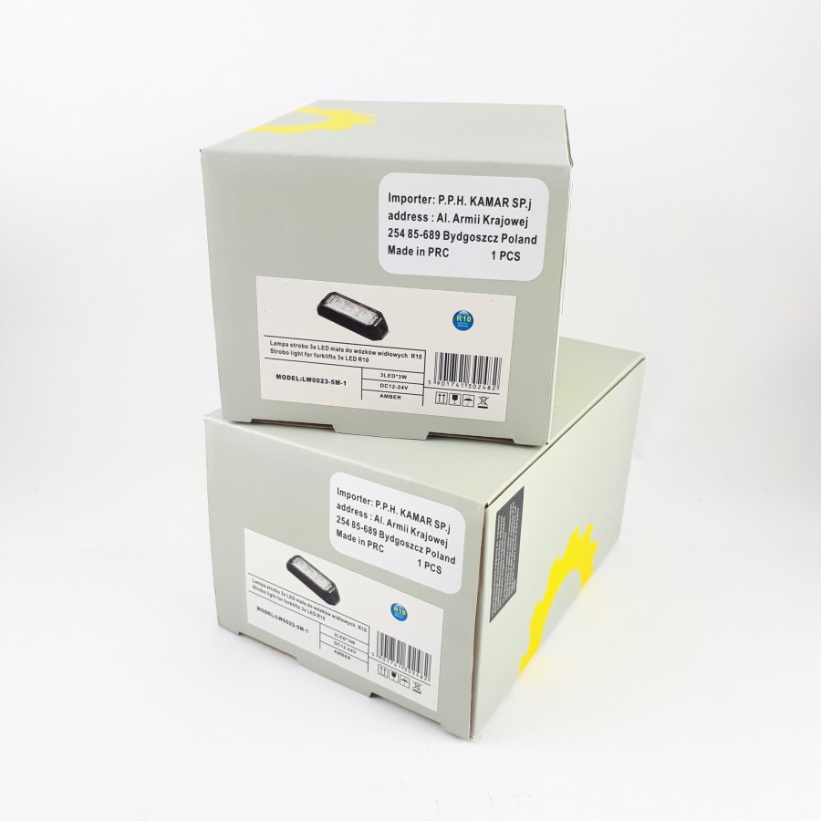 LW0023-5M-1 has features such as: 4 warning flashes. The lamp has 3 LEDs. LW0023-5M-1 characterized by a power of 9 W. LW0023-5M-1 is a certified product. According to standards such as ECE R10, CE. Moreover, it is made of materials: Lens: PC, Housing: AL. Fastening is screw. The voltage is 12 V/24 V. The product is packaged in the following configuration cart. dim.: 110x90x140 mm, lamp weight: 300 g, 50 pcs/bulk box.