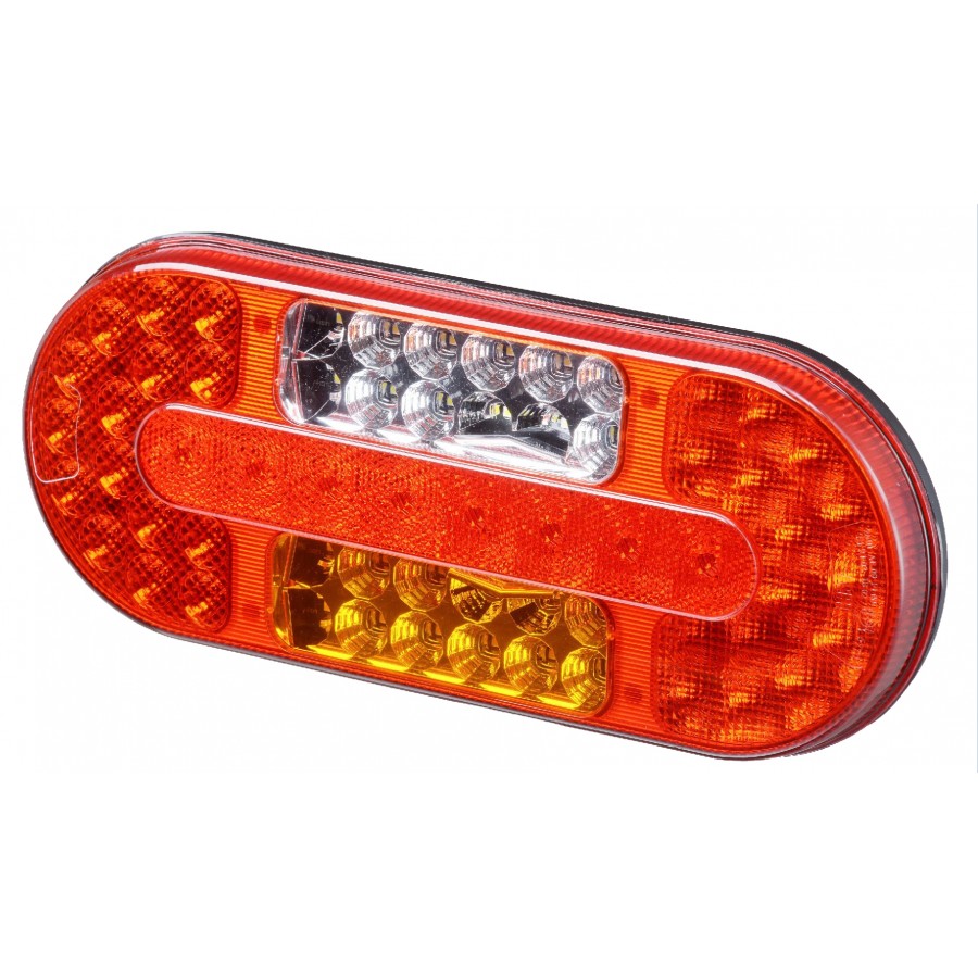 L1825 has features such as: tail, stop, indicator, fog, reverse, reflector. The lamp has 62 LEDs. L1825 characterized by a power of 1 W, 1,5 W, 1,5 W, 2,5 W, 3,5 W. L1825 is a certified product. According to standards such as ECE R3, ECE R6, ECE R7, ECE R10, ECE R23, ECE R38. Moreover, it is made of materials: Lens: PMMA, Housing: ABS. Fastening is screw. The voltage is 24 V. The product is packaged in the following configuration cart. dim: 330x140x70 mm, lamp weight: 670 g, 14 pcs/bulk box.