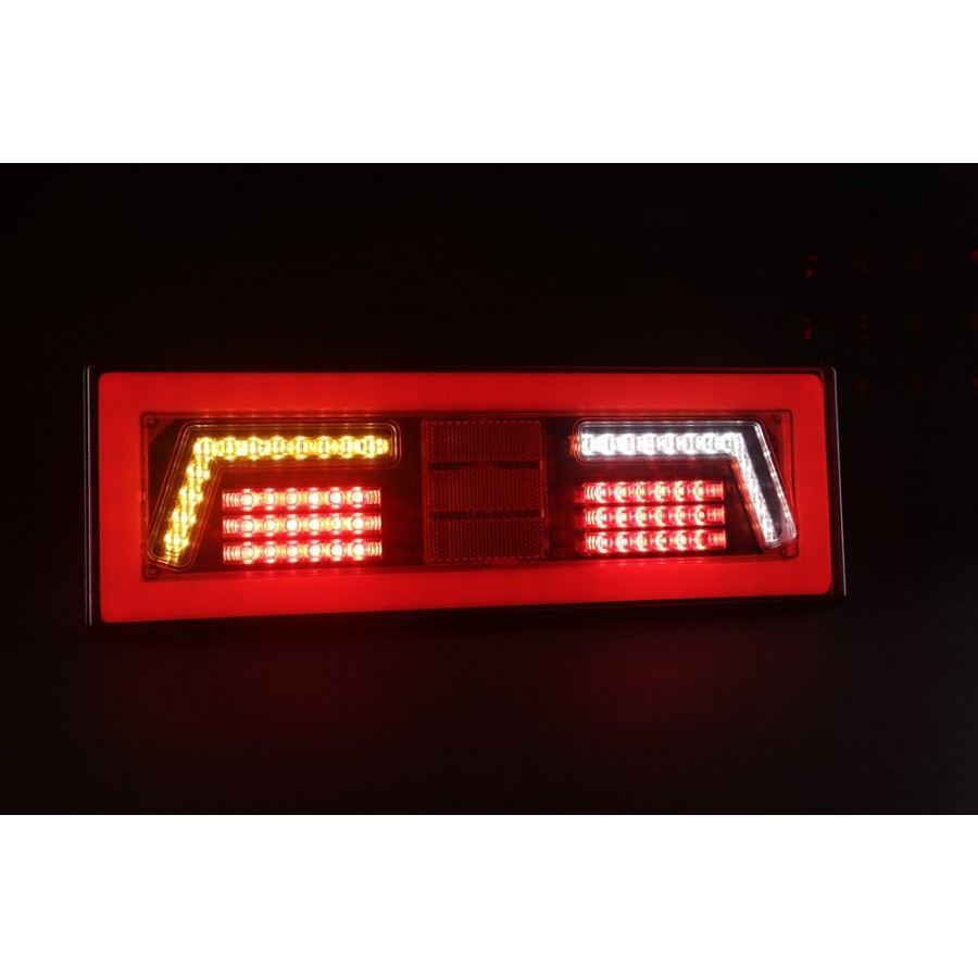 L1829 has features such as: tail, stop, indicator, fog, reverse, reflector. The lamp has 108 LEDs. L1829 characterized by a power of 2 W, 2 W, 22 W, 3 W, 3 W. L1829 is a certified product. According to standards such as ECE R3, ECE R6, ECE R7, ECE R10, ECE R23, ECE R38. Moreover, it is made of materials: Lens: PMMA+PC, Housing: ABS/PC. Fastening is screw. The voltage is 12 V/24 V. The product is packaged in the following configuration cart. dim: 400x140x60 mm, lamp weight: 780 g, 12 pcs/bulk box.
