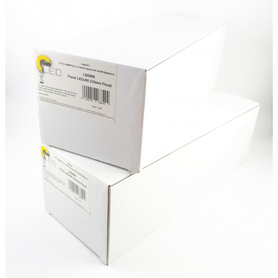 LB0088 has features such as: work light, combo. The lamp has 60x LED LEDs. The number of LM is 3900 LM. LB0088 characterized by a power of 90 W. LB0088 is a certified product. According to standards such as ECE R10. Moreover, it is made of materials: Lens: PC, Housing: AL. Fastening is screw. The voltage is 12 V/24 V. The product is packaged in the following configuration cart. dim.: 132x115x340 mm, lamp weight: 535 g, 20 pcs/bulk box.