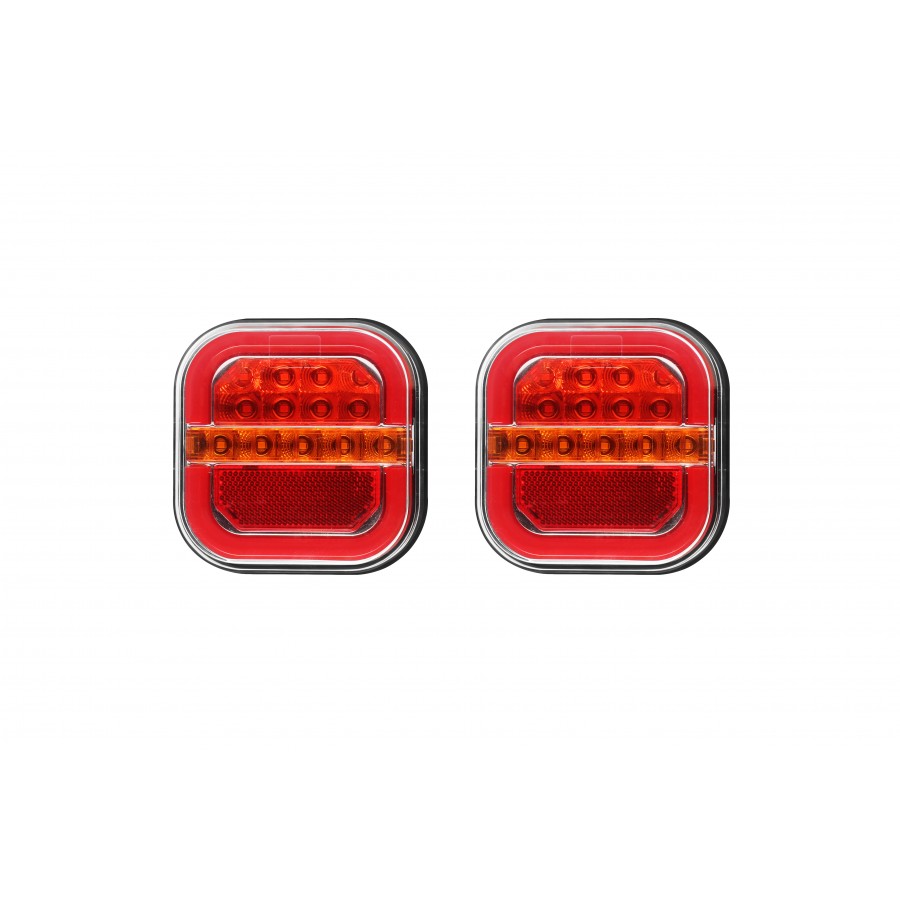 L2416 has features such as: tail, stop, indicator, NPL, reflex. The lamp has 41 LEDs. L2416 characterized by a power of 2,7 W, 1 W, 3 W, 0,5 W. L2416 is a certified product. According to standards such as ECE R3, ECE R10, ECE R148. Moreover, it is made of materials: Lens: PC, Housing: ABS. Fastening is screws. The voltage is 12 V/24 V. The product is packaged in the following configuration .