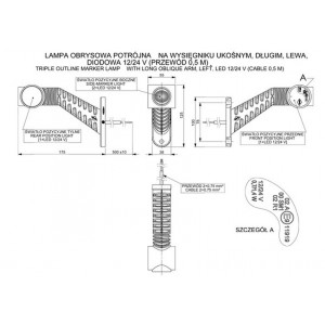 lampa diodowa, lewa, napięcie zasilające: 12/24V, moc znamionowa: 0,7/1,4 W, przewód: 2x0,75 mm2, 0,5m dł., funkcje lampy: światło pozycyjne przednie, światło pozycyjne boczne, światło pozycyjne tylne