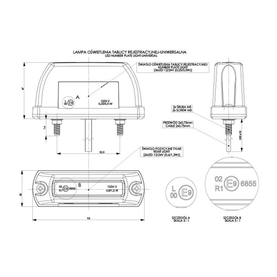 Side marker lamp LED LD 703 white-red 12/24V