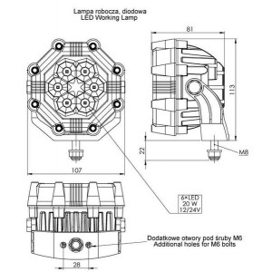 LED work lamp used to illuminate the working area in vehicles off the public roads. For proper installation and use of lights it is advisable to read the instructions to ensure personal safety and durability of the products. The device must be installed out of reach of children. The appliance must be fitted out of reach of children. If you would like to change the existing incandescent/halogen lighting on LED lighting - installation does not require to make any changes, except replacing the lamps.While installing new / additional LED lighting you must verify the current capacity of the switch to which you are going to connect the lamp. If you exceed the current carrying capacity of the switch to which you want to connect LED lighting, use an additional relay - the installation of lamps should make a professional engineer. Use in airy places. The instalation should be made by professional workshop of specialized service. User's manual available for download at www.truck-kamar.pl. Lamps must be installed only in accordance with UNECE regulations