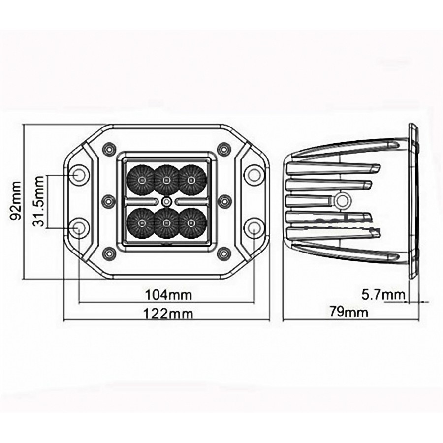 L0119 has features such as: work light, flood. The lamp has 4 495 LM LEDs. L0119 characterized by a power of 6 W. L0119 is a certified product. According to standards such as ECE R10. Moreover, it is made of materials: Lens: PC, Housing: AL. Fastening is screw. The voltage is 12 V/24 V. The product is packaged in the following configuration cart. dim.: 140x105x105 mm, lamp weight: 510 g, 30 pcs/bulk carton.