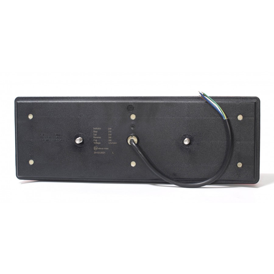 L1828 has features such as: tail, stop, indicator, fog, reverse, reflector. The lamp has 108 LEDs. L1828 characterized by a power of 2 W, 2 W, 22 W, 3 W, 3 W. L1828 is a certified product. According to standards such as ECE R3, ECE R6, ECE R7, ECE R10, ECE R23, ECE R38. Moreover, it is made of materials: Lens: PMMA+PC, Housing: ABS/PC. Fastening is screw. The voltage is 12 V/24 V. The product is packaged in the following configuration cart. dim: 400x140x60 mm, lamp weight: 780 g, 12 pcs/bulk box.