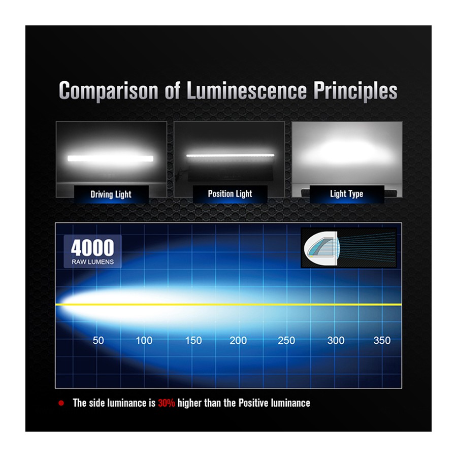 L3416 has features such as: position, driving lamp. The lamp has 18 + 30 LEDs. The number of LM is 4000 LM. L3416 characterized by a power of 5 W, 45 W. L3416 is a certified product. According to standards such as ECE R7, ECE R10, ECE R112. Moreover, it is made of materials: Lens: PC, Housing: AL. Fastening is screw. The voltage is 12 V/24 V. The product is packaged in the following configuration cart. dim: 405x74x105 mm, lamp weight: 1000 g, 10 pcs/bulk box.