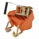 Plan the fastening and removal operations prior to commencing the journey. Determine the number of fastening straps. It is necessary to use only those straps that are designed for transverse fastening with encircling with Stf on the label for transverse fastening. During loading and unloading, notice the proximity of any low overhead power supply lines. Use only clearly marked and labelled fastening straps. Tensioner mechanism instruction manual: 1. Introduce the strap from the underside. 2. Pull manually to the desired length. 3. Tighten the strap firmly by moving the handle back and forth. Wind up not less than 1.5 coils and no more than 3 coils. 4. The tensioner must be closed Rolling the strap: 1. Pull the upper latch up and turn the handle by 180 degrees. 2. Remove the strap. Open by clamping the latch. NOTE: Before opening the tensioning mechanism, check that the load does not pose a threat of overturning, otherwise use stabilizers. The fastening straps shall be withdrawn from use when: - the strap cross-section has visible tearing/cutting of the fibres - seams are damaged - the strap is deformed due to heat (friction, radiation) or damaged due to effect of aggressive materials - the label is missing or illegible - scratches, cracks or other damage (e.g. caused by corrosion) are present on the connecting or tensioningelements - when the neck is widened or the fixing elements are generally deformed. The straps used to fasten loads should be visually inspected after each use for the occurrence of defects with impact on safety.