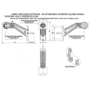 lampa diodowa, prawa, napięcie zasilające: 12/24V, moc znamionowa: 0,7/1,4 W, przewód: 2x0,75 mm2, 0,5m dł., funkcje lampy: światło pozycyjne przednie, światło pozycyjne boczne, światło pozycyjne tylne
