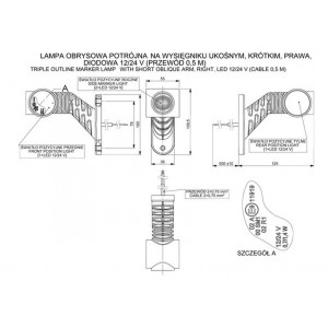 lampa diodowa, prawa, napięcie zasilające: 12/24V, moc znamionowa: 0,7/1,4 W, przewód: 2x0,75 mm2, 0,5m dł., funkcje lampy: światło pozycyjne przednie, światło pozycyjne boczne, światło pozycyjne tylne