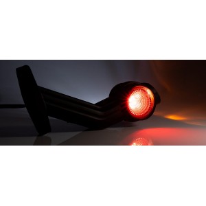 Lampa 3-funkcyjna obrysowo-gabarytowa LED, lewa, na długim gumowym ramieniu skośnym z przewodem 2x0,75 mm2 o długości 0,5 m. / 3-functional LED side marker, left, long, slanted rubber arm, 2x0.75 mm2 cable 0.5 m long. IP66/68 12V-36V