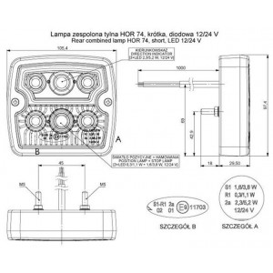 Lampa tylna diodowa, 12/24V, przewód: 4×0,5 mm2; 1 m dł., funkcje światła: pozycyjne tylne, hamowania, kierunkowskaz