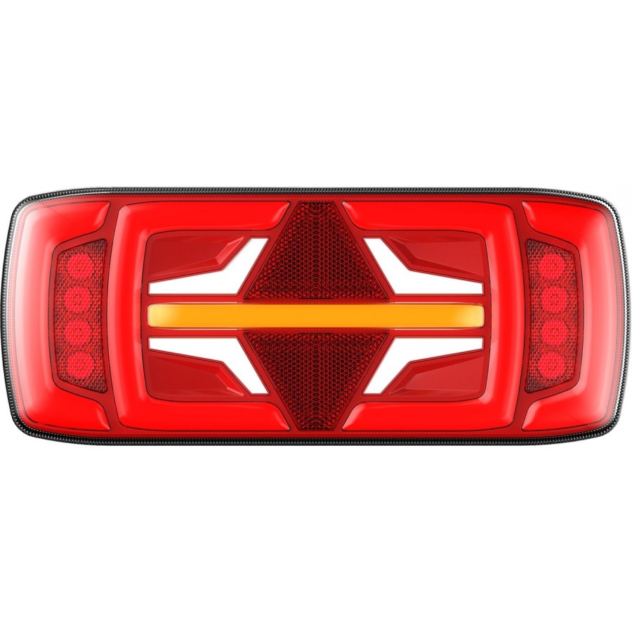 L1916 has features such as: tail, stop, indicator, fog, reverse, reflector. The lamp has 130 LEDs. L1916 characterized by a power of 1,8 W, 1,8 W, 6,8 W, 2,0 W, 8,3 W. L1916 is a certified product. According to standards such as ECE R3, ECE R6, ECE R7, ECE R10, ECE R23, ECE R38. Moreover, it is made of materials: Lens: PC, Housing: PC. Fastening is screw. The voltage is 12 V/24 V. The product is packaged in the following configuration cart. dim: 332x144x82 mm, lamp weight: 780 g, 12 pcs/bulk box.