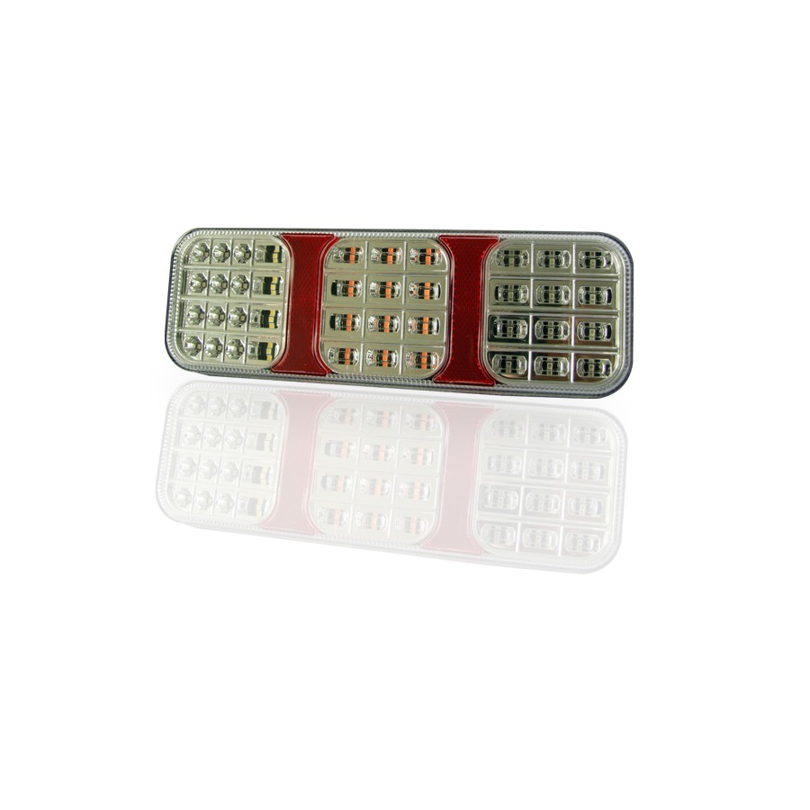 L1833 has features such as: tail, stop, indicator, fog, reverse, reflector. The lamp has 40 LEDs. L1833 characterized by a power of 0,6 W, 3,2 W, 3,4 W, 3,2 W, 2 W. L1833 is a certified product. According to standards such as ECE R3, ECE R6, ECE R7, ECE R10, ECE R23, ECE R38. Moreover, it is made of materials: Lens: PMMA/PC, Housing: ABS. Fastening is screw. The voltage is 12/24 V. The product is packaged in the following configuration cart. dim: 290x110x60 mm, lamp weight: 580 g, 20 pcs/bulk box.