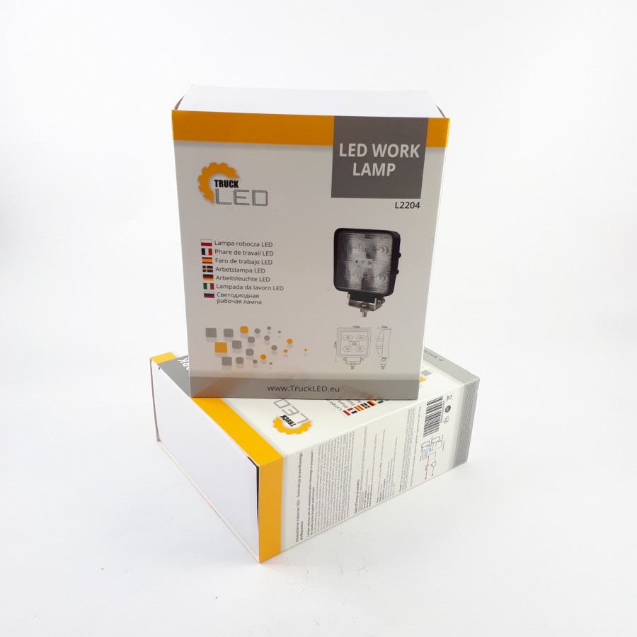 L2204 has features such as: work light, flood. The lamp has 5 LEDs. The number of LM is 500 LM. L2204 characterized by a power of 14 W. L2204 is a certified product. According to standards such as ECE R10. Moreover, it is made of materials: Lens: PC, Housing: AL. Fastening is screw. The voltage is 12 V/24 V. The product is packaged in the following configuration cart. dim.: 150x130x50 mm, lamp weight: 480 g, 40 pcs/bulk carton.
