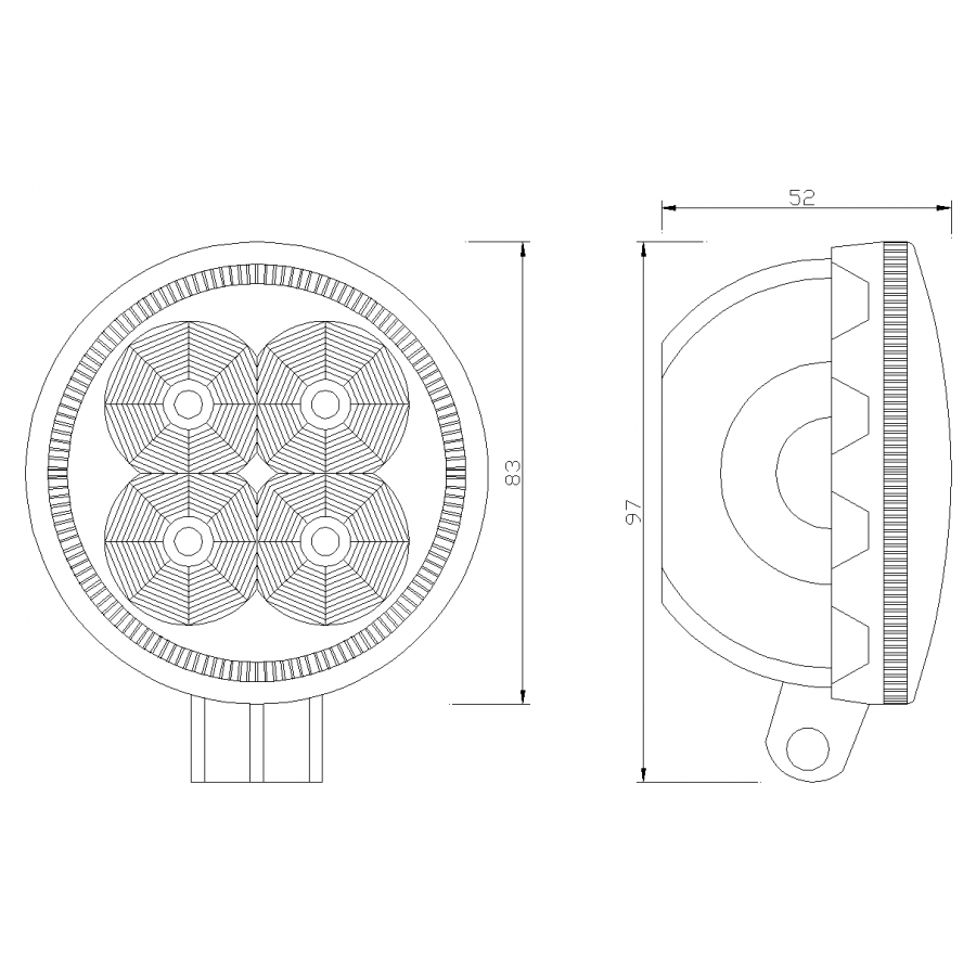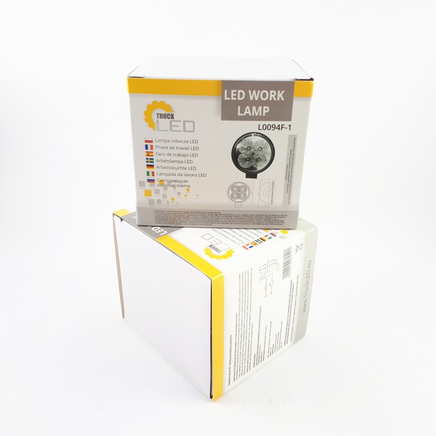 L0094F-1 has features such as: work light, flood. The lamp has 4 LEDs. The number of LM is 700 LM. L0094F-1 characterized by a power of 14 W. L0094F-1 is a certified product. According to standards such as ECE R10. Moreover, it is made of materials: Lens: PS, Housing: AL. Fastening is screw. The voltage is 12 V/24 V. The product is packaged in the following configuration cart. dim.: 90x100x90 mm, lamp weight: 119 g, 40 pcs/bulk carton.