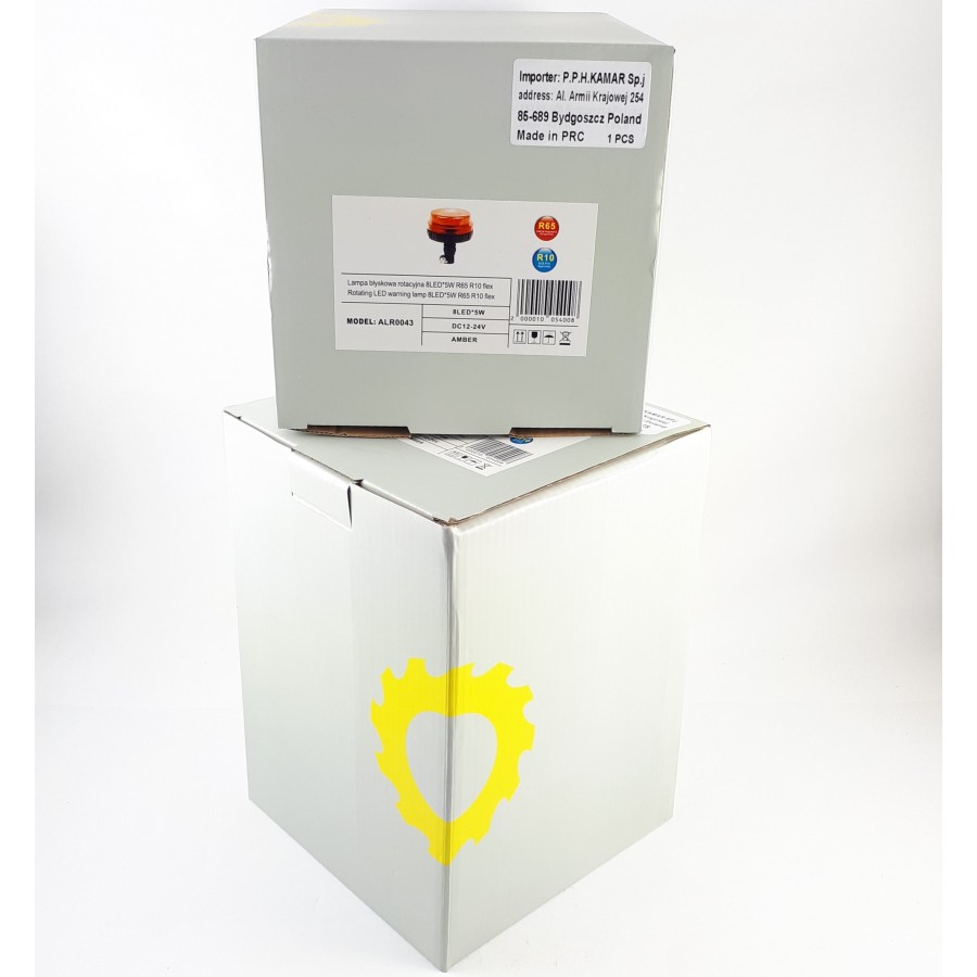 Lampa błyskowa rotacyjna 8LED 13W R65 R10 flex o numerze ALR0043 posiada takie funkcje jak: 1 błysk rotacyjny. Posiada ona 8 LEDów. ALR0043 charakteryzuje się poborem mocy w wysokości 13 W. ALR0043 jest produktem certyfikowanym. Zgodnie z normami takimi jak ECE R65, ECE R10. Ponadto jest ona zbudowana z materiałów: Klosz: PC, Obudowa: PC. Lampa błyskowa rotacyjna 8LED 13W R65 R10 flex jest mocowana na flex. Napięcie wynosi 12 V/24 V. Produkt jest zapakowany w następującej konfiguracji wym. kart: 150x150x200 mm, waga lampy: 600 g, 20 szt/karton zbiorczy.
