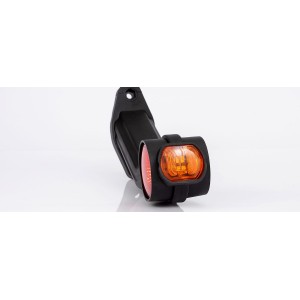 Lampa 3-funkcyjna obrysowo-gabarytowa LED, lewa, na długim gumowym ramieniu skośnym z przewodem 2x0,75 mm2 o długości 0,5 m. / 3-functional LED side marker, left, long, slanted rubber arm, 2x0.75 mm2 cable 0.5 m long. IP66/68 12V-36V