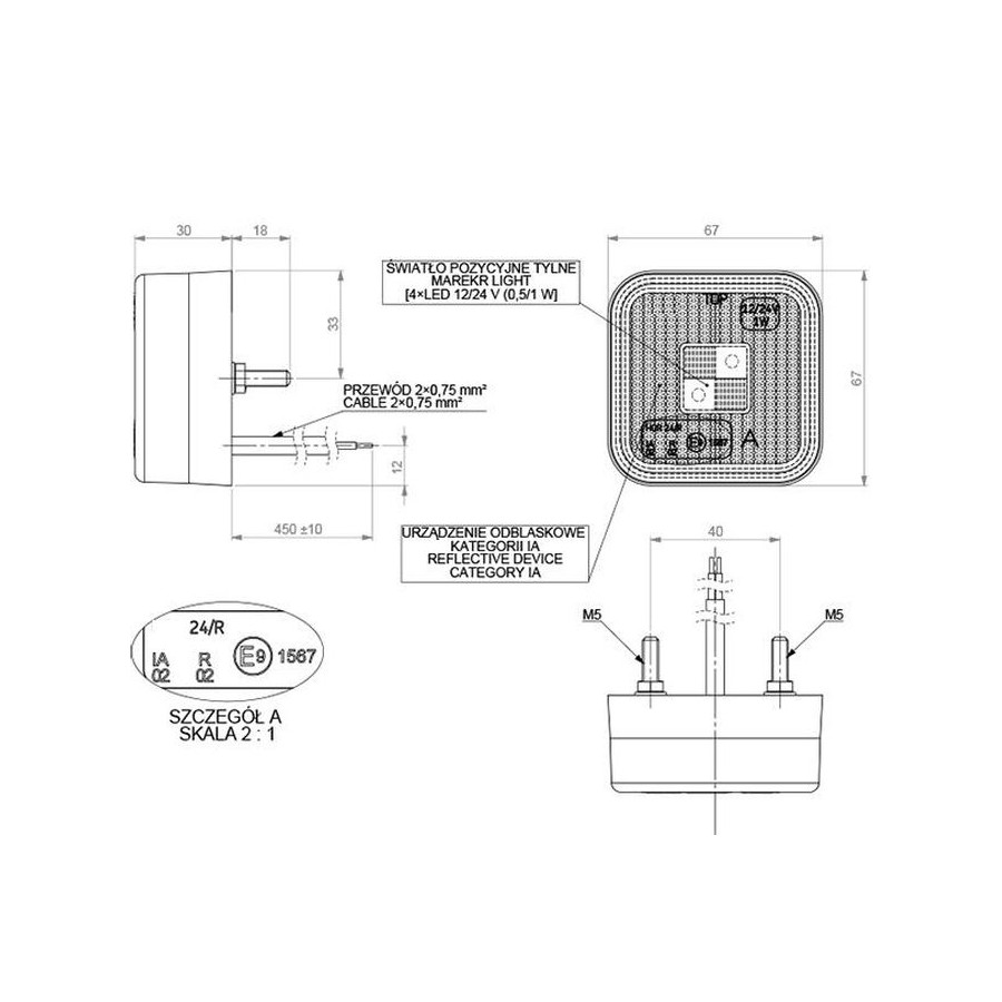 Funkcje lampy: światło pozycyjne przednie, urządzenie odblaskowe