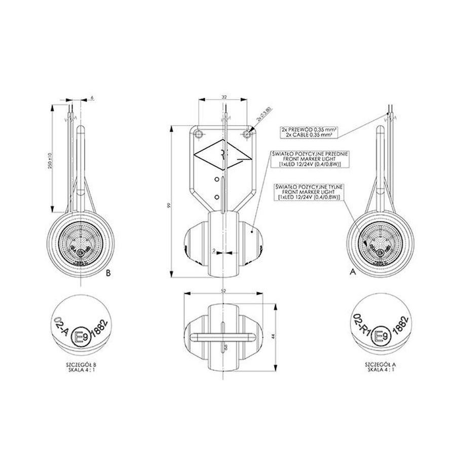 Funkcje lampy: światło pozycyjne przednie, światło pozycyjne tylne.