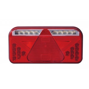 Lampa tylna LED 5-fun. z trójkątem + NPL Lewa o numerze L1911 posiada funkcje: pozycja, stop, kierunek, cofanie, ośw. tab., p/mg, odblask. Posiada ona 61 LEDów. L1911 charakteryzuje się poborem mocy w wysokości 1,7 W, 2,2 W, 22 W, 2 W, 0,6/1,2 W, 2,8 W. L1911 jest produktem certyfikowanym. Zgodnie z normami takimi jak ECE R3, ECE R4, ECE R6, ECE R7, ECE R10, ECE R23, ECE R38. Ponadto jest ona zbudowana z materiałów: Klosz: PMMA, Obudowa: ABS + PC. Lampa tylna LED 5-fun. z trójkątem + NPL Lewa jest mocowana na 2x śruba. Napięcie wynosi 12 V/24 V. Produkt jest zapakowany w następującej konfiguracji wym. kart: 140x65x265 mm, waga lampy: 572 g, 22 szt/karton zbiorczy.