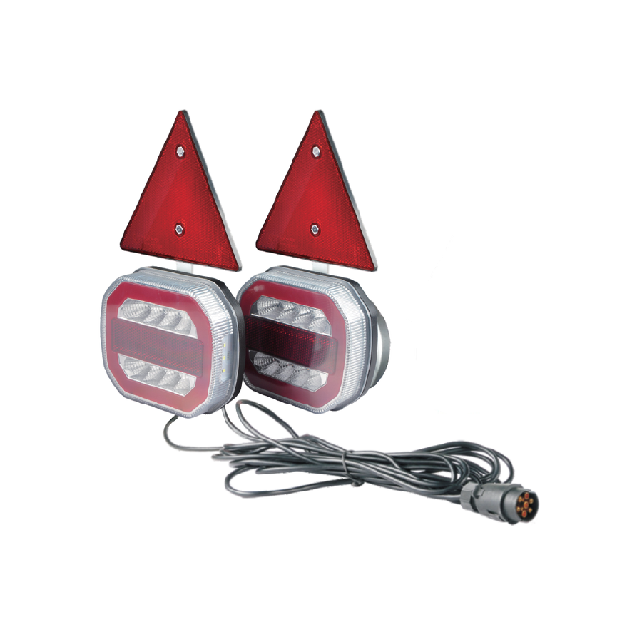 Zestaw Lamp LED neOn 12/24V o numerze L2412-Z posiada funkcje: Pozycja, Stop, Kierunek, Podśw. rej., Odblask. Posiada ona 55 LEDów. L2412-Z charakteryzuje się poborem mocy w wysokości 1 W, 4,5 W, 1,2 W, 1,2 W. L2412-Z jest produktem certyfikowanym. Zgodnie z normami takimi jak ECE R3, ECE R4, ECE R6, ECE R7, ECE R10. Ponadto jest ona zbudowana z materiałów: Klosz: PC, Obudowa: ABS. Zestaw Lamp LED neOn 12/24V jest mocowana na magnes. Napięcie wynosi 12 V/24 V. Produkt jest zapakowany w następującej konfiguracji wymiary kartonu: 270x260x80, waga lampy:, 10 szt/karton.