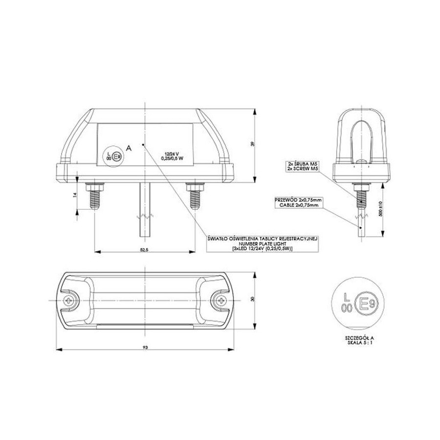 Фонарь освещения номерного знака LED чёрный 12 / 24V LTD 702 L1702