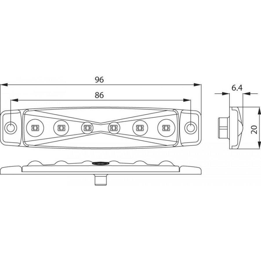 Lama obrysowa przednia biała 6 LED. Napięcie 24V