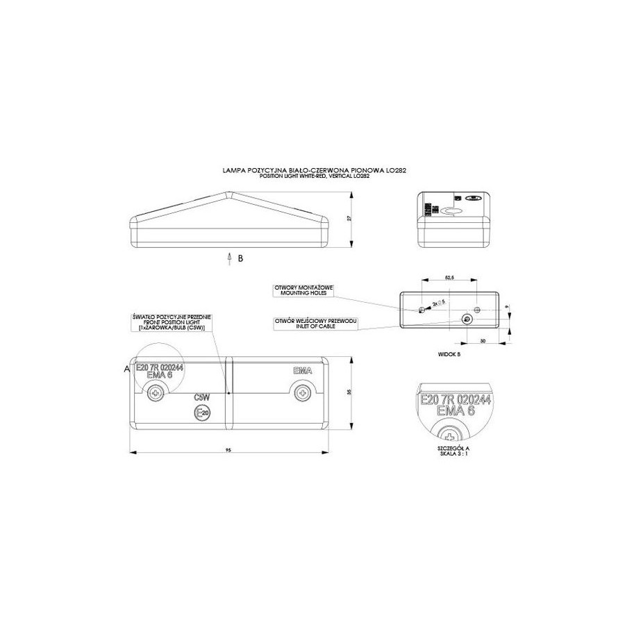 Фонарь габаритный бело-красный плоский LO282 L0282