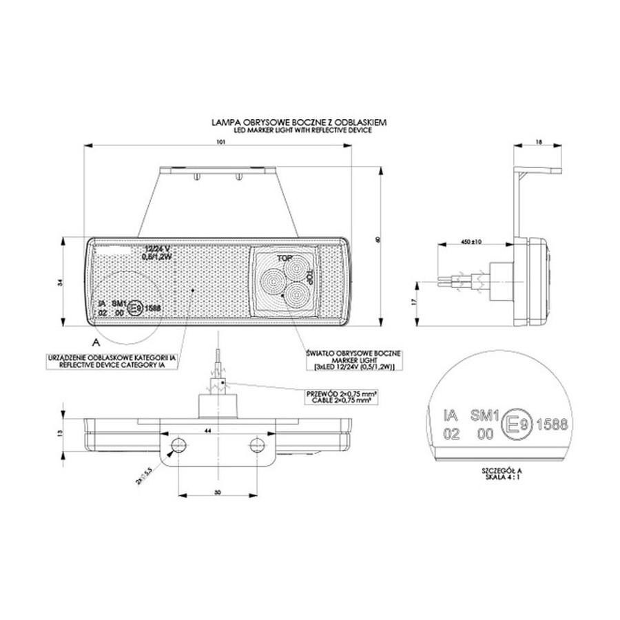 Боковой маркер со светоотражающим светодиодом оранжевый 12 / 24V L0456P