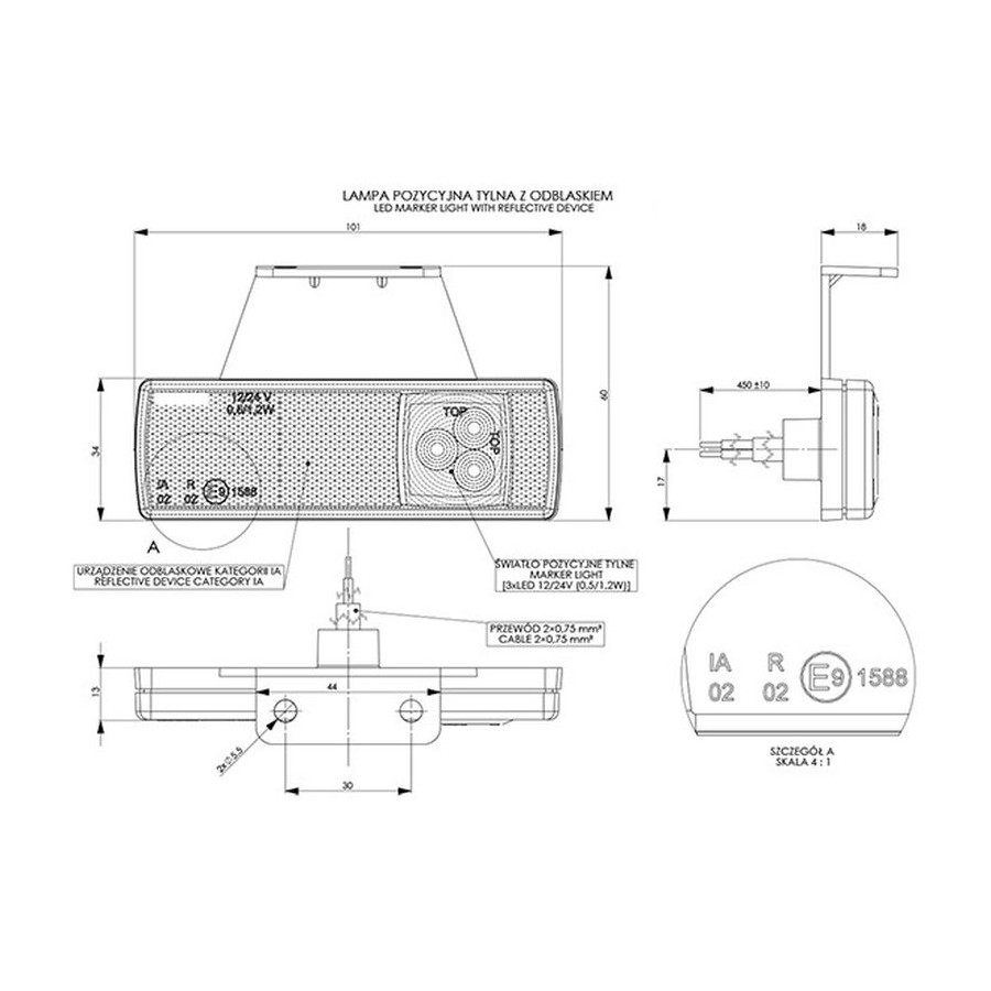 Боковой маркер со светоотражающим светодиодом оранжевый 12 / 24V L0458P