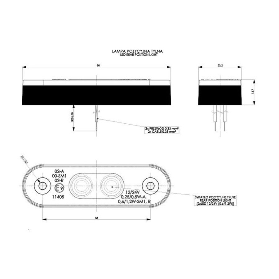 Side marker red LED 12/24V