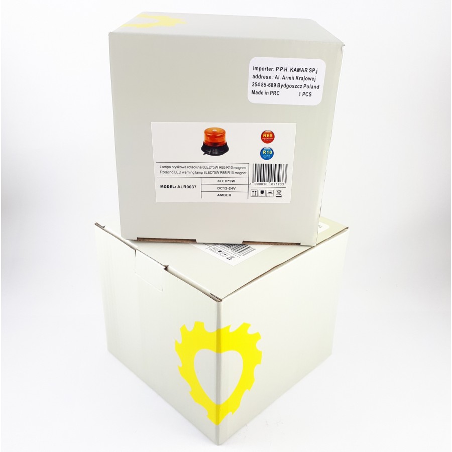 ALR0037 has features such as: 1 rotating flash. The lamp has 8 LEDs. ALR0037 characterized by a power of 13 W. ALR0037 is a certified product. According to standards such as ECE R65, ECE R10. Moreover, it is made of materials: Lens: PC, Housing: PC. Fastening is magnet. The voltage is 12 V/24 V. The product is packaged in the following configuration cart. dim.: 150x150x140 mm, lamp weight: 520 g, 20 pcs/bulk box.