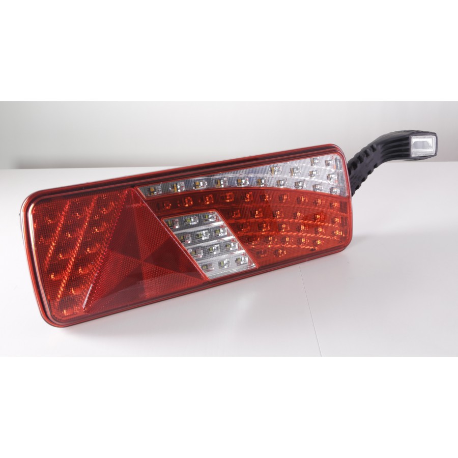 L1823 has features such as: tail, stop, indicator, fog, reverse, SML, reflector. The lamp has 69+6 LEDs. L1823 characterized by a power of 1 W, 3,5 W, 3,5 W, 2,5 W, 3 W, 0,6 W. L1823 is a certified product. According to standards such as ECE R3, ECE R6, ECE R7, ECE R10, ECE R23, ECE R38, ECE R91. Moreover, it is made of materials: Lens: PC, Housing: ABS. Fastening is screw. The voltage is 12/24 V. The product is packaged in the following configuration cart. dim: 590x160x100 mm, lamp weight: 1250 g, 10 pcs/bulk box.